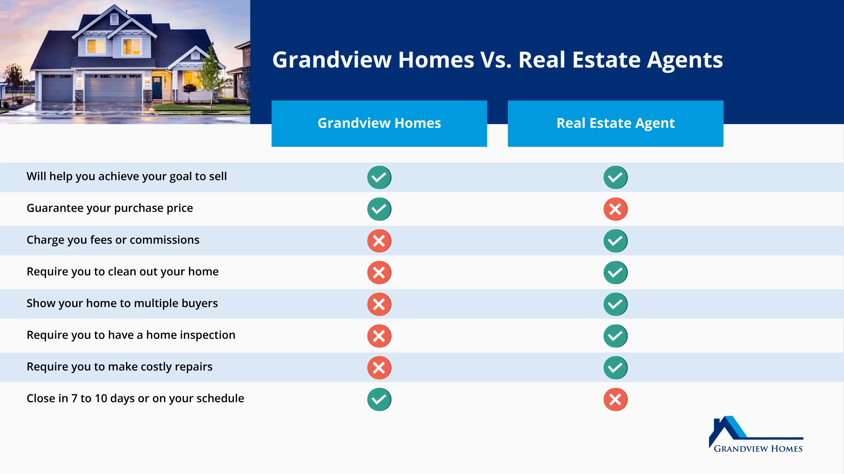 Let’s compare selling your home to Grandview versus a standard real estate transaction with an agent: